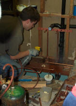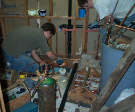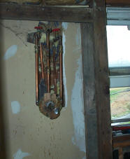 We weren't here to see Micah's face when he came in to do the repair of his perfect plumbing job. We had gone to our home fellowship and Daniel and Tara kept working along while we were gone and were here for Micah when he arrived. He had the repair made in moments and left the section of copper pipe with the hole in it for a souvenir.