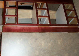 The holes have been cut for the plumbing (which is in place already) behind the finished fiberglass shower. This last shot is in the shower looking up at one of the 45º corners where the shower head will be. Wes made the opening to be able to accommodate a shower curtain/rod which will hang 'behind' the entry "wall" and he built up the step into the shower for water to be better contained within the shower.