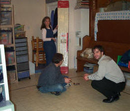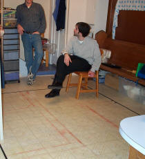 We moved things out of the way so that Wes and Daniel could lay out the whole project to scale on the kitchen floor.