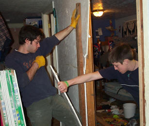 Thus began our aerobic exercise of the day! Everyone rushing like crazy in different directions! While Daniel unscrewed the plywood from the wall and held the pipe with the hole in it while several ran down to the bathroom directly below the infamous remodeling site where hot water was pouring through the ceiling, Wes ran out to the lane to cut the water, Tara went to the water heater to cut off the hot water, Kathryn ran out to the electrical panel to cut the power to the water heater while I grabbed towels to put all over the floor. Soon, more towels needed in the bathroom and Daniel came down to remove the plexiglass light coverings to allow the rest of the water to drip down while I cleaned under the bathtub and around the floor. It was actually a good thing because so much debris had fallen into the ceiling that now it was being washed down. It all worked out and I kept saying that stuff happens to everyone... it wasn't a problem too great for all of us to take care of and certainly not too great for the LORD. Besides... doesn't a Tsunami disaster put things in a different light!?!