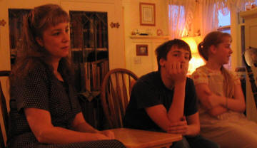 These two pics were taken during our family sharing and prayer time. Once again, Dad's behind the camera and we didn't get shots of everyone. |