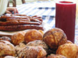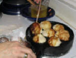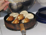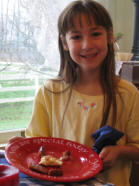Wes took Naomi out for breakfast on Christmas Eve (as is the custom, Wes takes the "birthday child" out for breakfast on their birthday). Yes, he's even taken her out on Christmas morning---but it's sort of an odd feeling for a Daddy to take his daughter out on Christmas morning... and leave the rest of the family at home---just is a pretty odd feeling---but he likes to do what she likes and so this year Naomi wanted to have a special breakfast for her birthday on Christmas morning . Well, anyway... I do love to make aebleskivers for our family so she helped with the planning of that! Tasty and fun to eat---but more fun to make... I use a knitting needle to turn the "cakes" over and over in the pans---I have 2 Aebleskiver pans to keep piles of aebleskivers coming out of the kitchen to the dining table! We like them dusted with powdered sugar and served with raspberry jam or pure maple syrup---and sausages! It's a very healthy breakfast! We call for the aid car just before the first batch is brought to the table. Naomi loved using the Red Plate for her birthday breakfast---and for each meal that day!