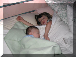 December 29, 2004 The year is winding down and I'm sort of wondering how it all happened so fast and where the days---no, months---went. What are the results of an entire year spent and where did the little children go? I was just getting ready to hang the new calendar and... what? I need to hang another new calendar? Ah... so, in the theatre of my mind plays a seeming endless film of days gone by. It's an odd film, though, because it's got decades of memories interspersed within the frames. Sort of like an old volume with pictures and notes and clippings and pressed flowers between the pages. That's how this past year seems to me, for it has been in this year that I've come to discover that I'm turning another corner in life and I'm beginning the journey down a new path---an unknown path---and for that reason, the unknown's, I'm sad and sort of not looking forward to the travels ahead. I'm painfully aware that my baby is slowly slipping away, that she can no longer be held as an infant in my arms and will soon outgrow my cradling arms. I had no idea that I'd ever come to this place. I had no idea I'd ever cry for just one more opportunity to cradle , or nurse, or diaper, or rock the baby. I had no idea this was part of the journey. I had no idea I'd ever be to this point in the road and turn around only to dimly see all the babies and miss them so terribly. So this year's been that "turning point" or so it seems.